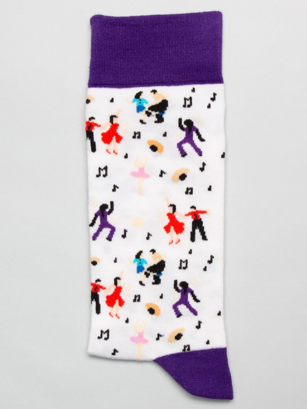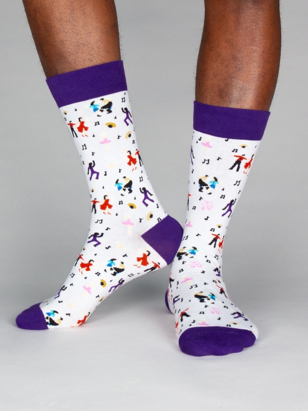 Glide into elegance with these socks adorned with a vibrant dancers pattern. Each step becomes a dance of its own, as the rhythm of your movements echoes the grace and energy of the performers. Embrace the art of motion with every stride.The model wears a size 42-46.