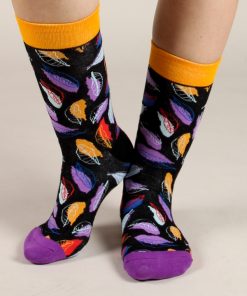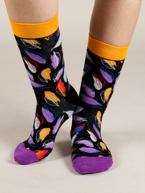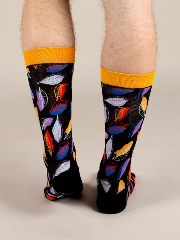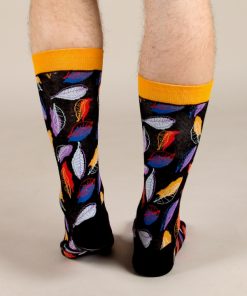 Goodbye autumn, hello summer, however, just because the tree leaves on this pair of socks are falling, doesn’t mean you can’t wear them. This warm colored pattern will look great under a colorful chino and black shoes. Start the day off right – with originality to boot!