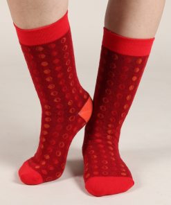 Coton Doux Uniex Socks With Moon Pattern On Red Background