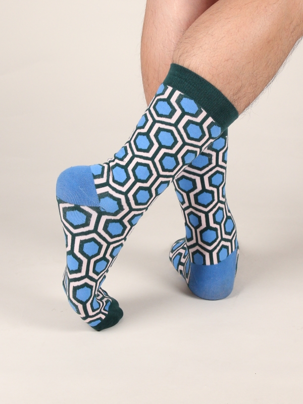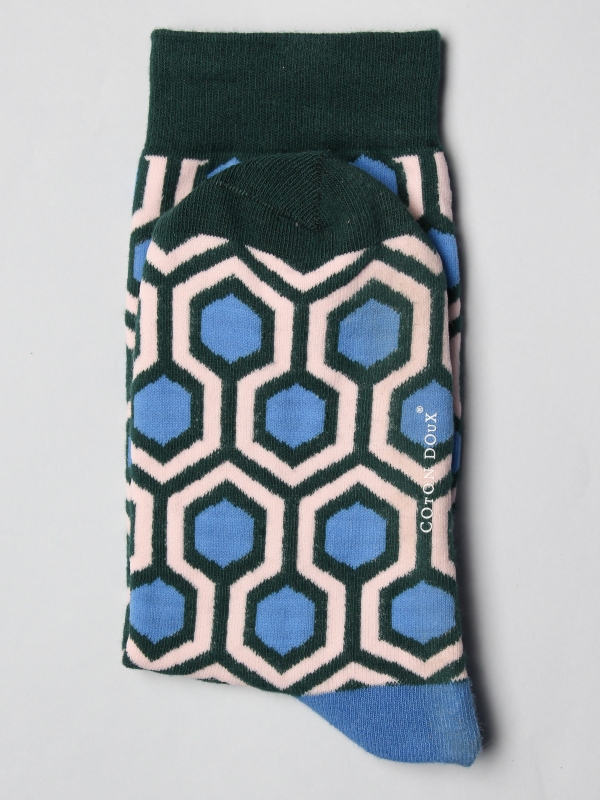 This anthique pink geometric art deco pattern is presented in new shades and without it, your sock collection will be fullfilled. Dare this association under raw jeans and a pink or navy polo, according to your desires. The boldness does not prevent comfort, as evidenced by its composition mostly cotton.
