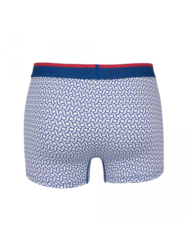 Don’t hesitate in opting for these trunks printed with dots and very luminous blue and white waves, uplifted by their navy blue waistband. Discrete but original, you will certainly appreciate their comfort and support. 93% cotton and 7% spandex.