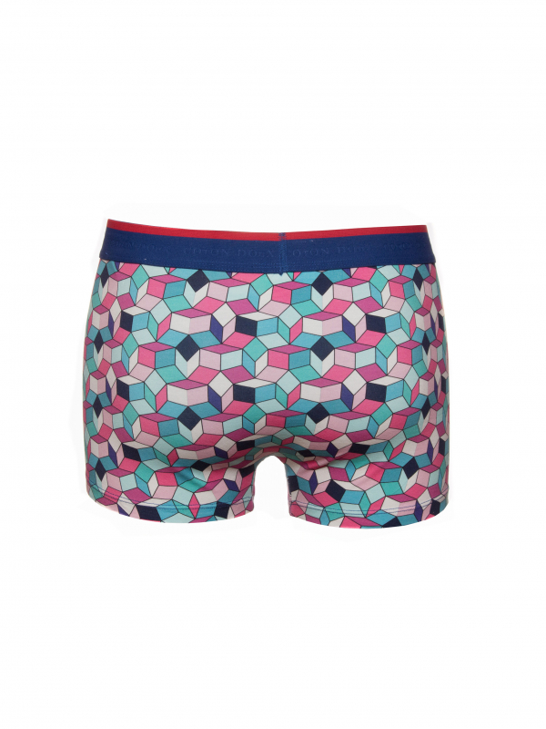 Do you feel like 3D geometric pattern? This boxer with cubic pattern was made for you! Optical illusion guaranteed ! Its pink, violet, turquoise colors will make your cloudy mornings happier.