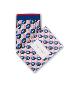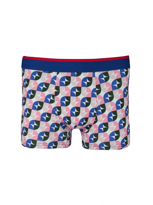 These blue and pink two principal tones geometric trunks are made with soft cotton and a touch of elastane. Crafted for a comfortable fit, it showcases a comfort logo waistbands too to get the perfect balance for support. This print looks good from any angle with the bright youth color.