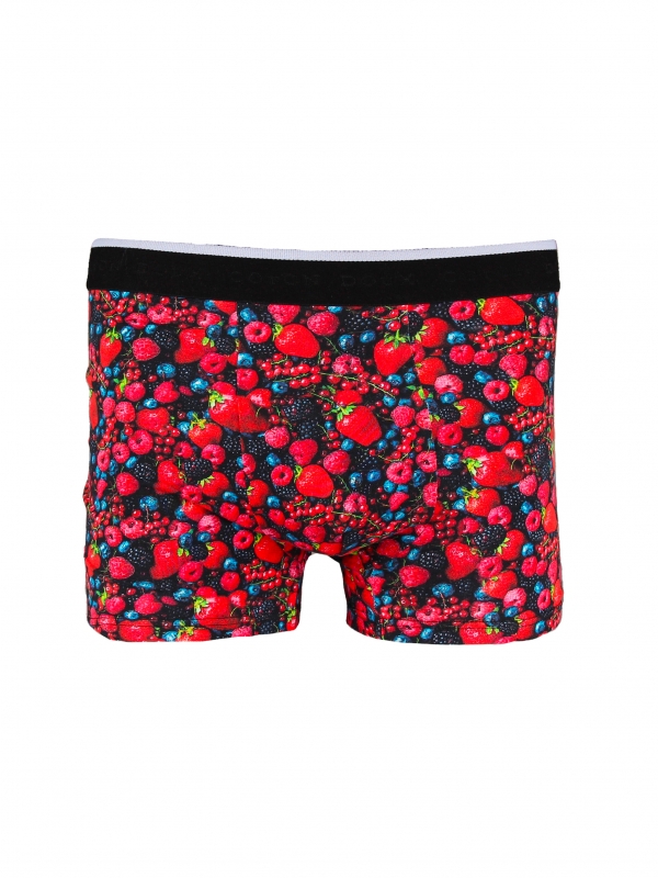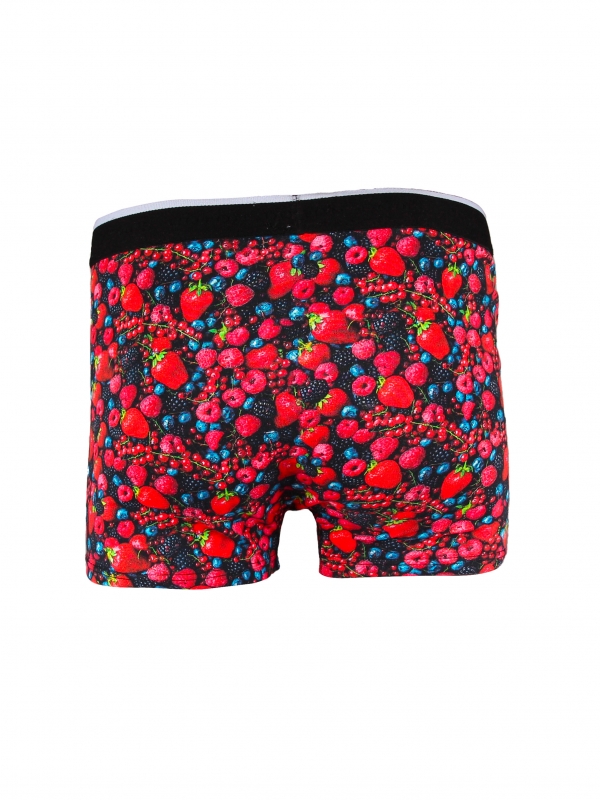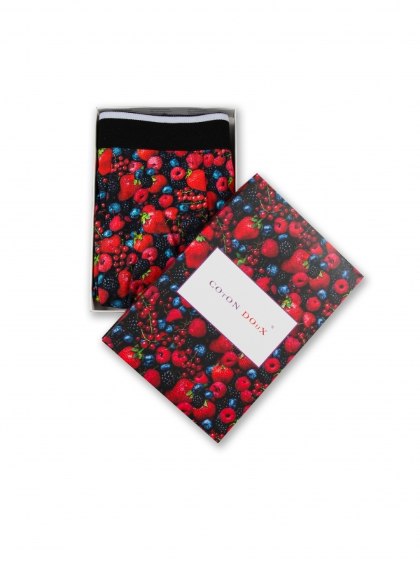 These trunks with wild berries print are designed for a relaxed fit to spend a sweet day. More than its originality you will appreciate also its comfort and support. Displaying an elasticated logo waistband, trunks are made of cotton and a touch of elastane for stretch fit. For once, don’t be afraid to get stain! These berries will not bleed.