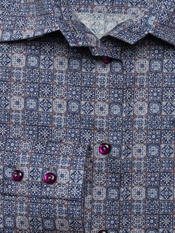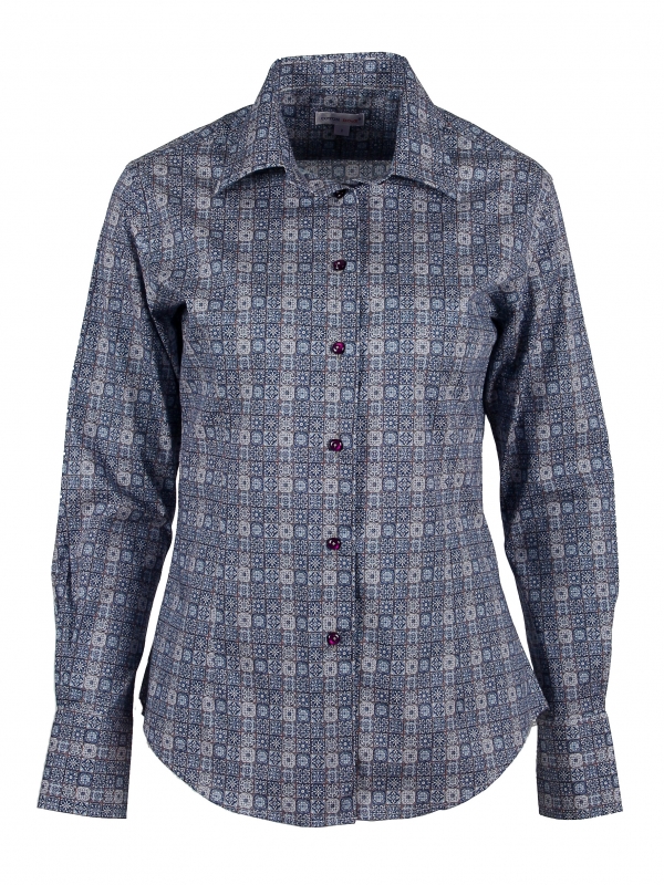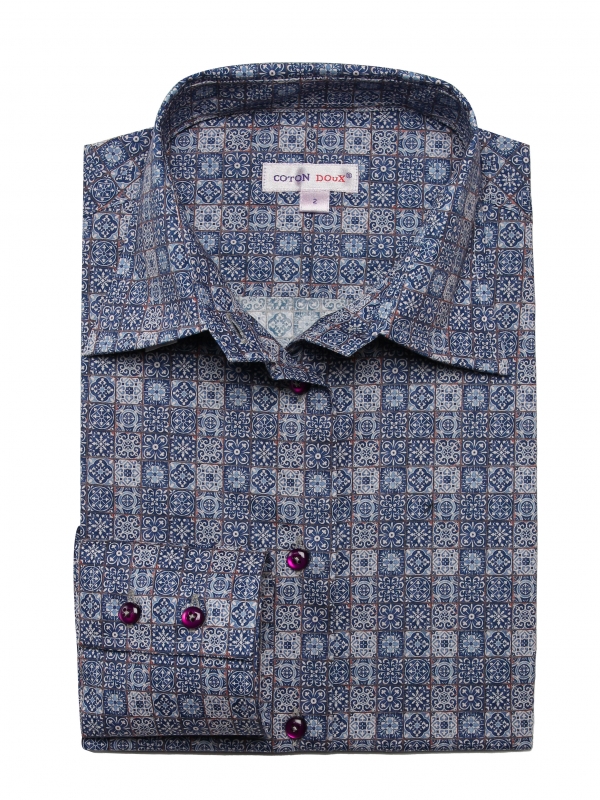 Coton Doux Women’s Fitted Shirt With Azulejos Print