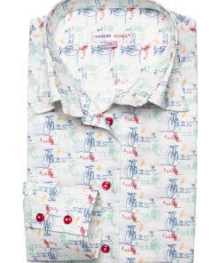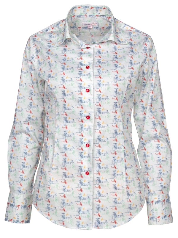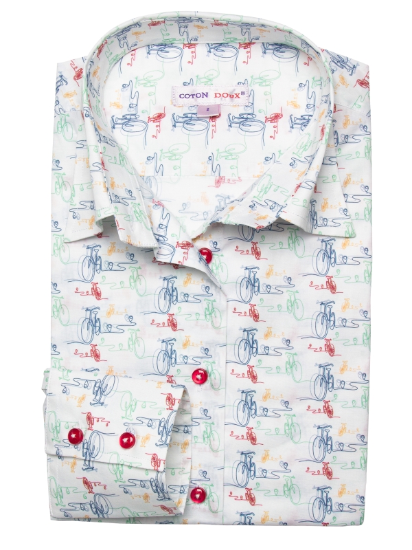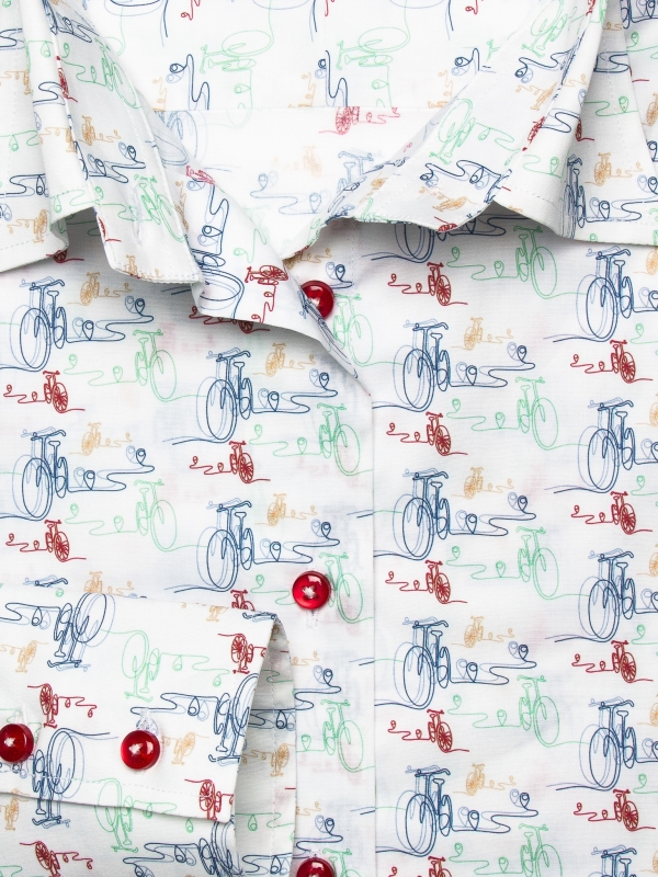 Gear up for effortless style with our Bike Print shirt, featuring charming bicycle motifs that bring a touch of playful adventure to your wardrobe. The classic collar and double-button cuffs offer a refined touch, while the slim fit ensures a sleek, contemporary silhouette. Perfect for a stylish yet relaxed look, pair this shirt with navy chino shorts and white canvas sneakers. Ride through your day with confidence and flair, as this shirt seamlessly blends fun and sophistication.