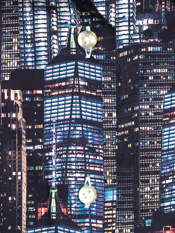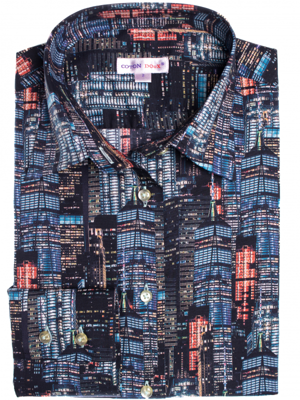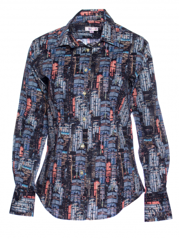 The nights will from now on be yours thanks to this building printed shirt. Wear it with black carrot trousers and an orange blazer to contrast and highlight the outfit. Your femininity will also be enhanced thanks to the fitted cut, small classic collar and its double-button cuffs.