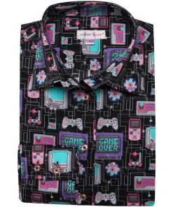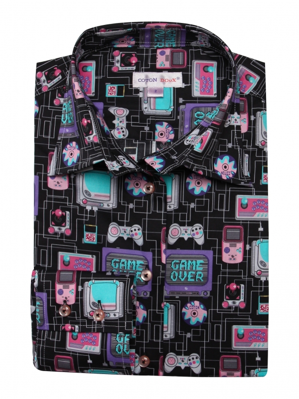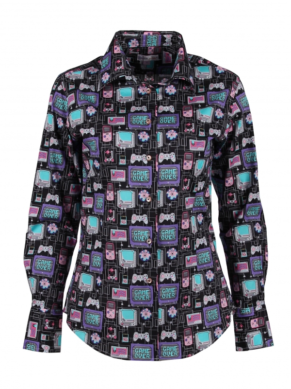 Coton Doux Women’s Fitted Shirt With Electronic Games Print