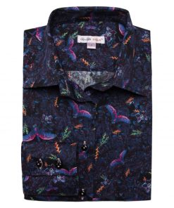 Bring out the poet in you and let yourself be transported to a dreamlike world with the color of these fluorescent birds. The classic collar and double button cuffs of this shirt will extend the journey and you’ll enjoy revealing them without much under a navy suit jacket. Pair the slim fit with powder pink jeans for contrast.