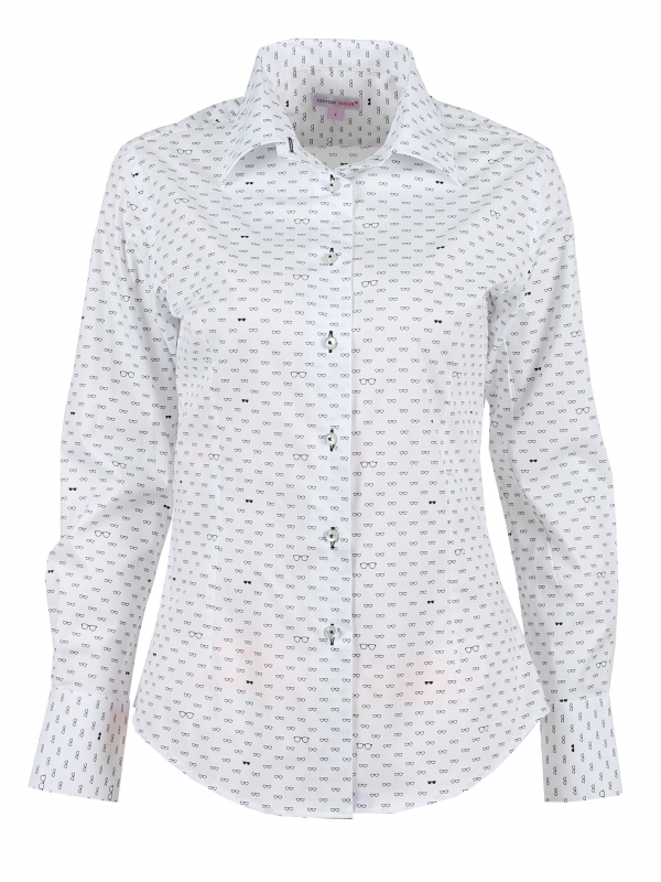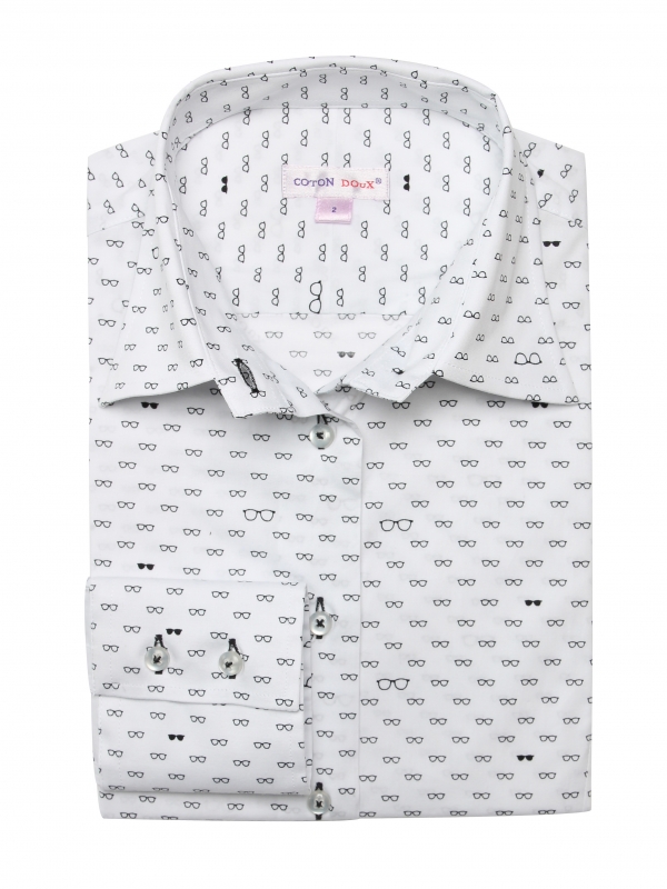 Coton Doux Women’s Fitted Shirt With Glasses Print