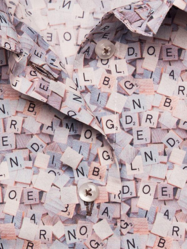 The game is in your hands with this printed shirt. The subtle wood tones of the letter blocks will stand out and be given character if worn with darker pants such as chocolate chinos. Thanks to double-button cuffs and a classic, Milanese collar, you’ll be guaranteed an elegant and original style, and will be envied by all word lovers.