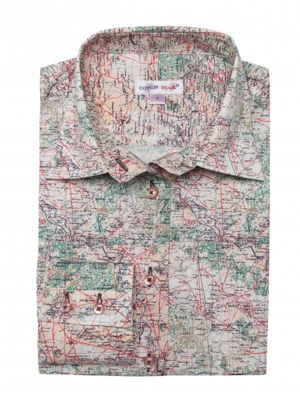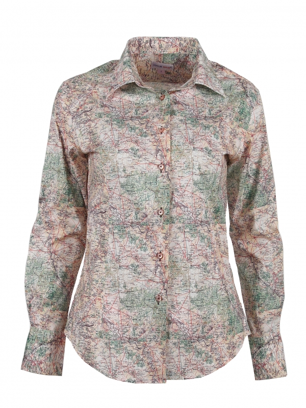 Coton Doux Women’s Fitted Shirt With Map Print