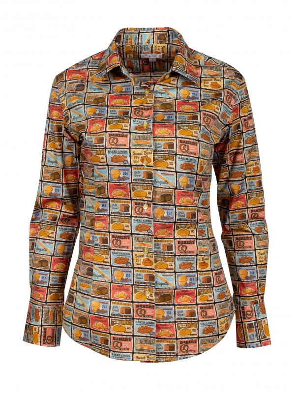 Coton Doux Women’s Fitted Shirt With Pastries Print