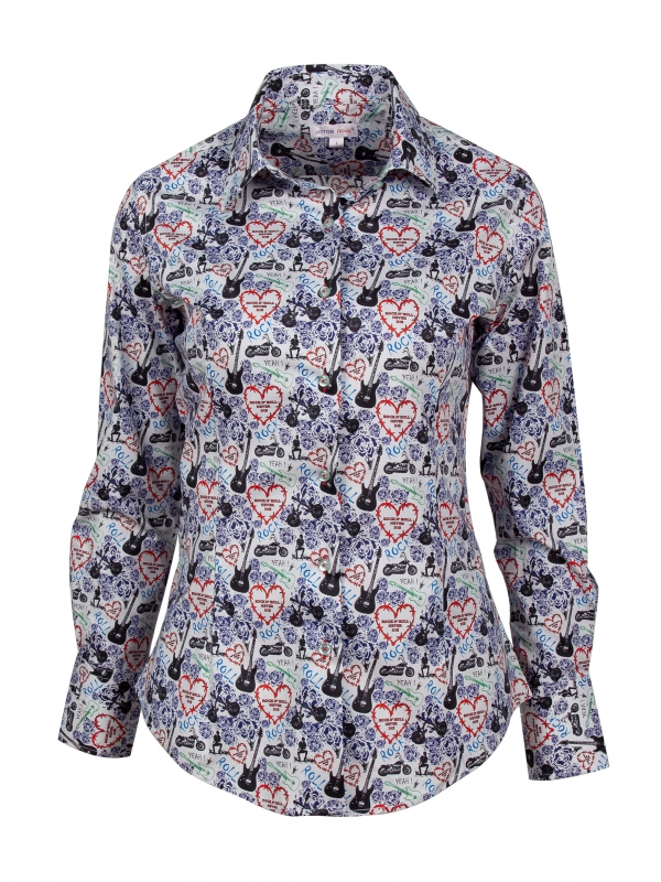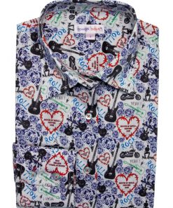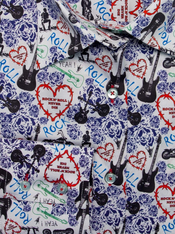 Rock the scene with our dynamic shirt boasting a bold Rock ‘n Roll print. With its classic collar, double-button cuffs and slim fit, this shirt channels the rebellious spirit of the music world. Pair it with your favorite leather jacket for an edgy ensemble that’s sure to turn heads. Whether you’re hitting a concert or simply expressing your love for music, this shirt guarantees to show your style with its vibrant print and electric attitude!
