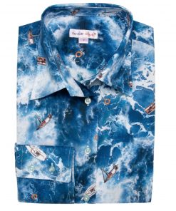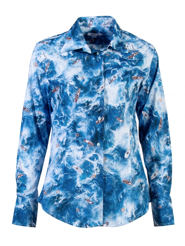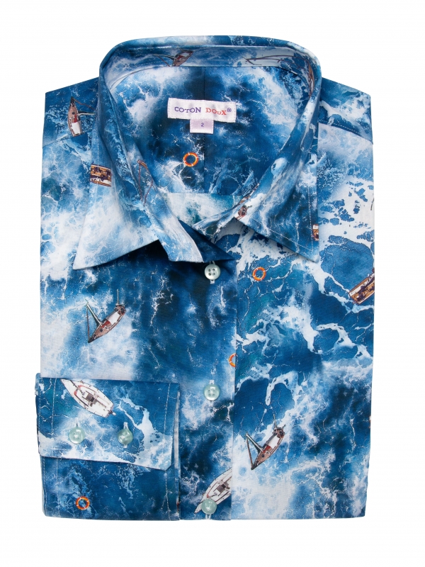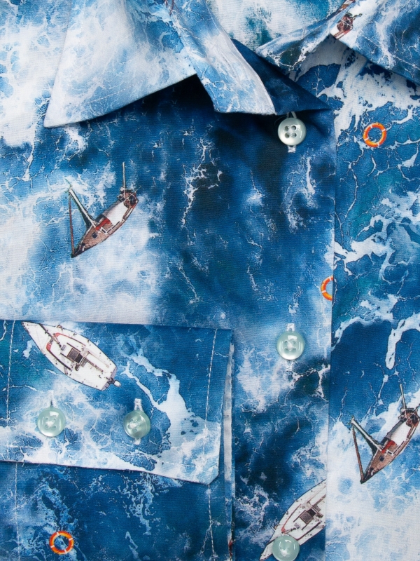 This shirt with sea print is a reminder the sea can be rough! Thanks to its intensive colours and design, this shirt will be a must-have in your wardrobe. Match it with a white chino for a great effect, open your classic collar slightly and the double-button cuffs. Let the wind blow in!