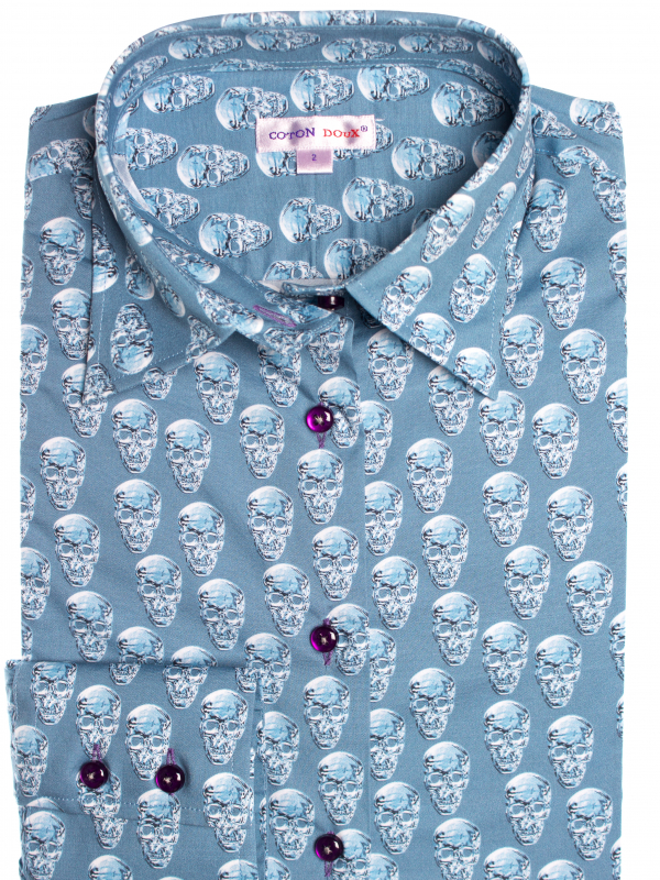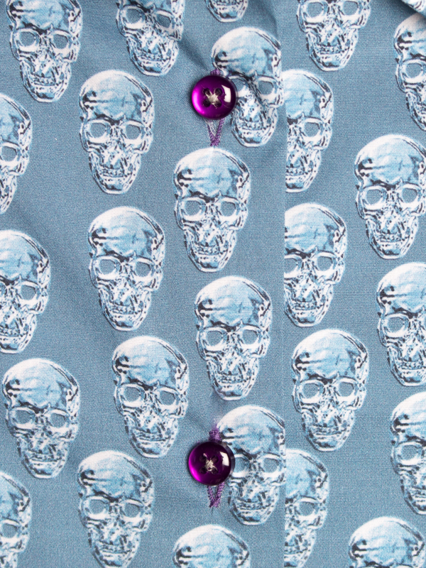 Here is a perfect shirt for a rock’n’roll look thanks to its skull print. The translucent print is surprising and its fitted cut, classic collar and double-button cuffs contribute to the casualness. Worn with black leather pants and boots, the total look will be successful!