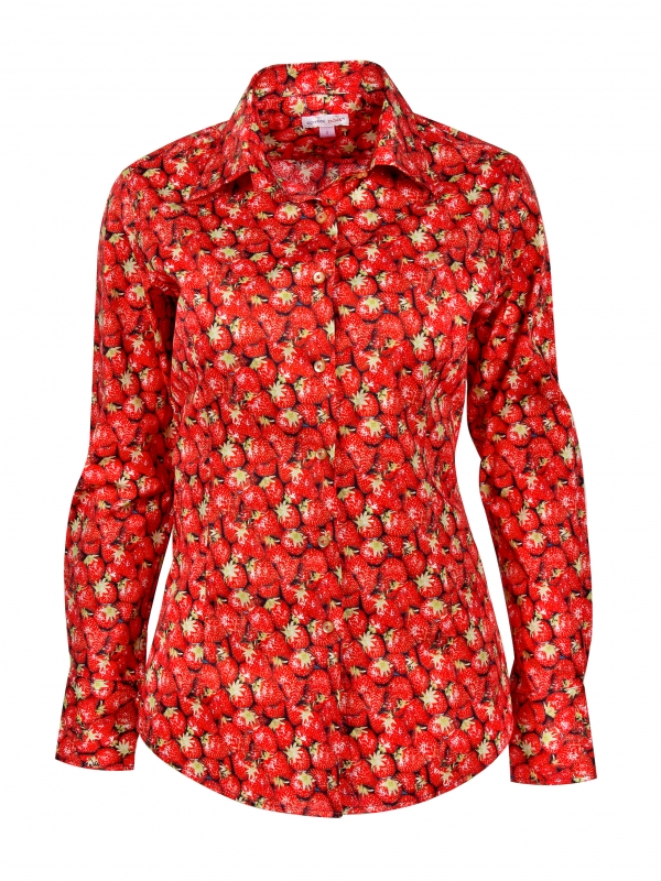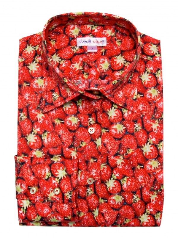 You’ll be blushing with pleasure in this strawberry print blouse. Its intense colour and freshness will brighten up your outfit and the slim fit will hug your curves. The hidden detail? Its double-button cuffs and classic collar, which you can dress up elegantly with a beige trench coat, for example, if the weather is cool. For bottoms, why not try a beige or khaki chino? Accessorise to your heart’s content, and you’ll still look fabulous!
