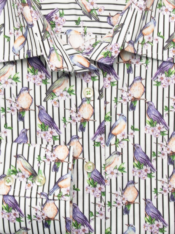 Elevate your look with this tits-print shirt that invites you to embrace the harmony of nature! Adorned with a classic collar and double-button cuffs, the tailored fit offers an elegance with a light touch. For a chic and cozy style, pair it with dark green plaid wool pants and black velvet ballet flats for optimal comfort. Complete the ensemble with a cashmere cardigan for an added touch of comfort. The titmice will add a natural charm to your look. Come celebrate the splendor of nature and let yourself be carried away by the sweet song of the titmice!