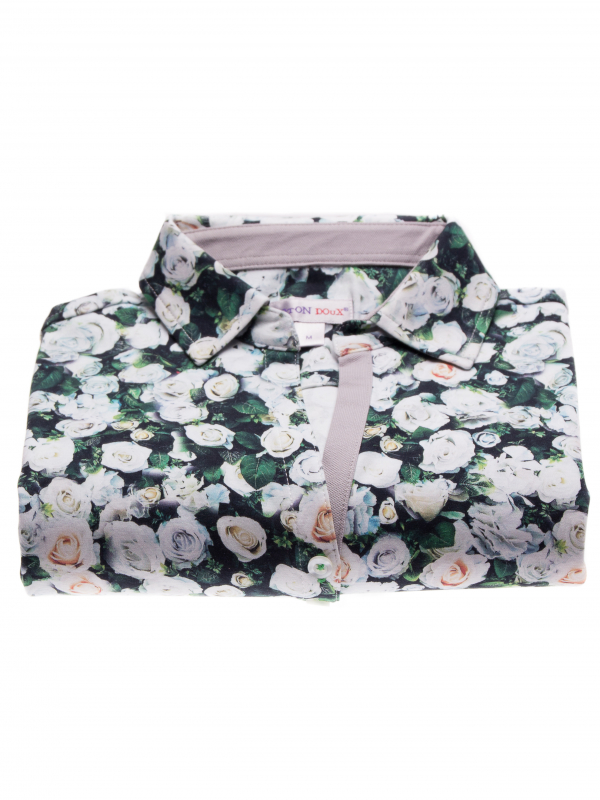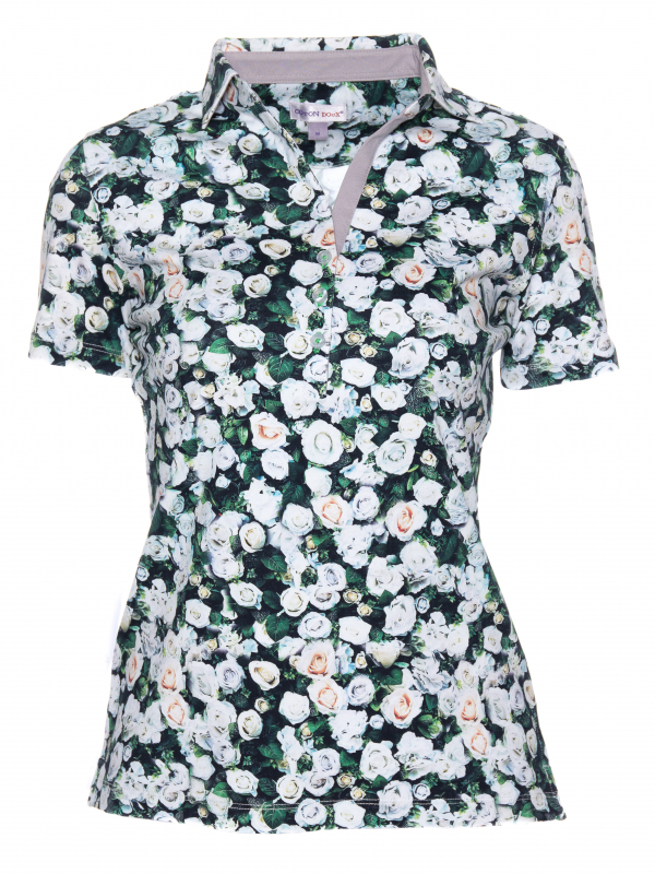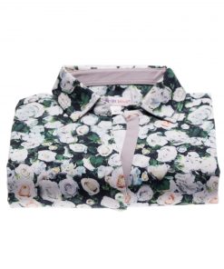 Give this this polo shirt like a bouquet of white roses, the illusion will be perfect. In addition to the precision of its print, you will appreciate its pretty fitted cut, its elegant triple buttons and its cotton piqué collar. For a cocktail with friends or during a bucolic walk, wear this model with beige chino pants or a white denim skirt and appreciate its comfort grace of its cotton jersey composition.