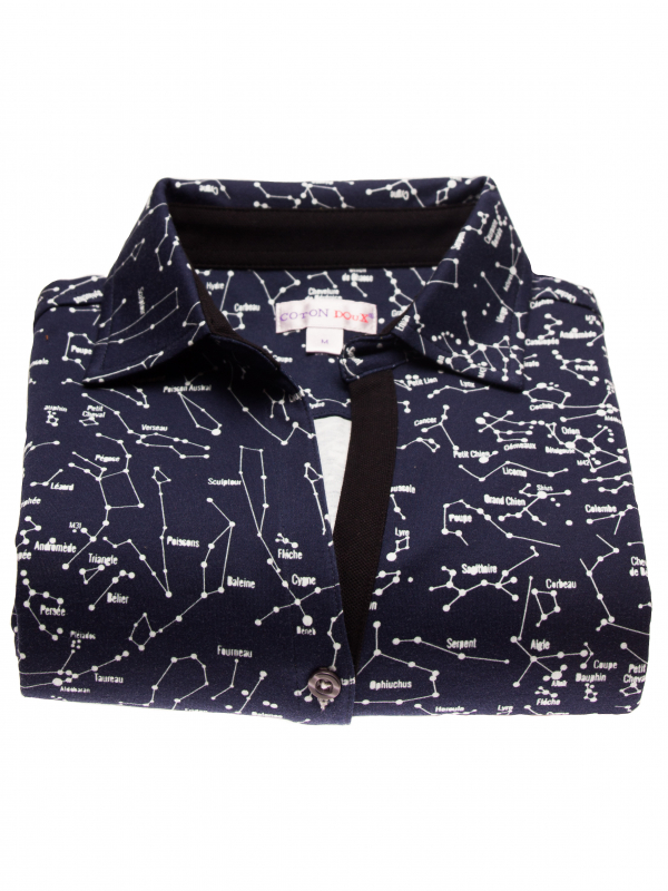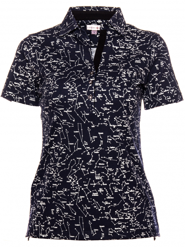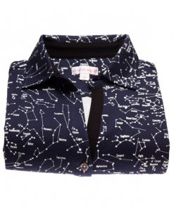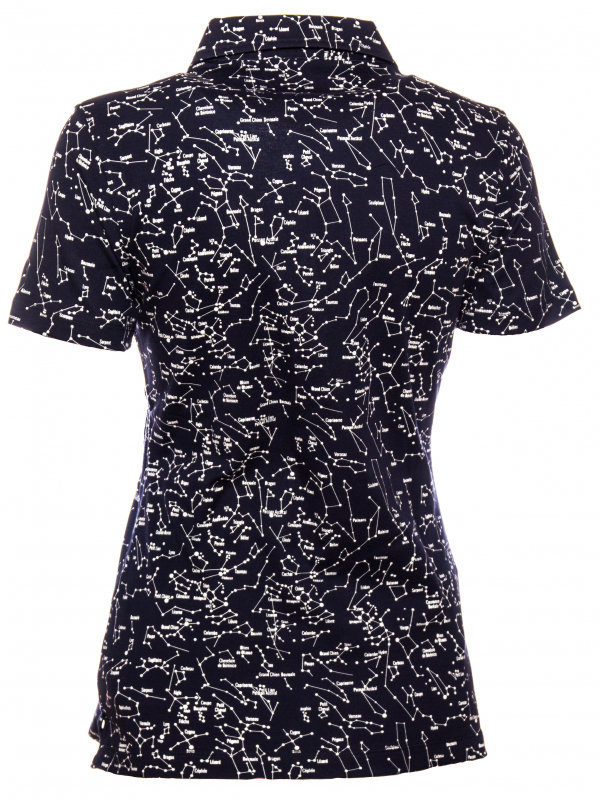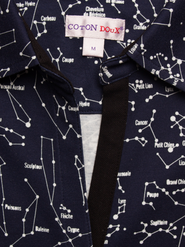 Shoot for the stars with this constellation printed shirt, which will lighten up your dressing room as well as your friends and family. Its dark blue color, mercerized cotton jersey and three-button placket underline the elegance and refinement of the model. Combined with white jeans, its slim fit will make you look your best.