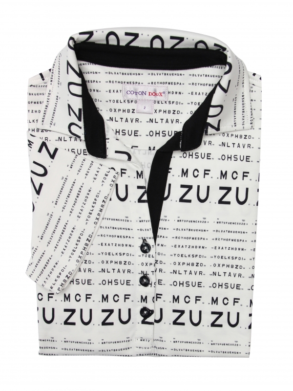 Did you look forward to eye tests when you were only in primary schools? Or are you now dreading them for your visits to the ophthalmologist? In both cases, this polo shirt with monoyer print in mercerized cotton jersey composition is just waiting for you! The cotton piqué collar and its three-button placket will make you a real woman at ease in her clothes! A pair of black trousers will be the ideal piece to complete your outfit.