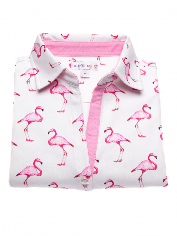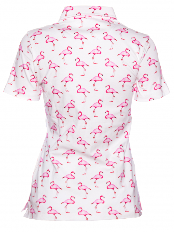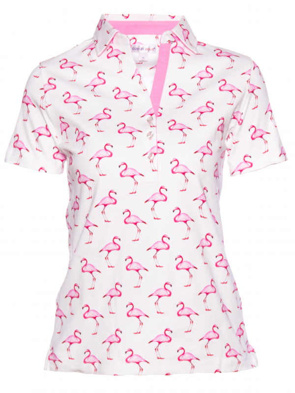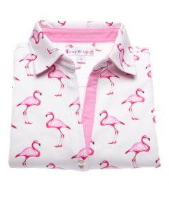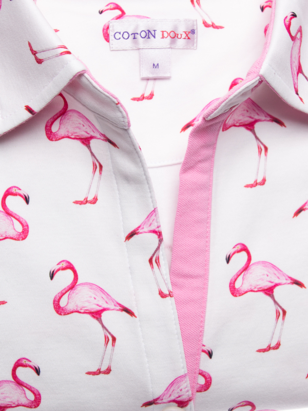 Adopt this trendy print again by wearing this short-sleeved polo shirt with pink flamingo print! The majesty of this print perfectly matches the elegance of the slim cut and the plain piqué cotton collar. All this combined with a navy blue suit and white sneakers will give you that casual chic look you’ve been dreaming of!