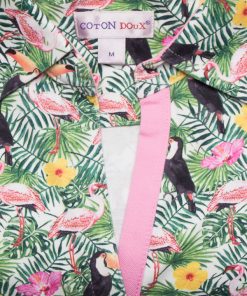 Nothing better than a tropical bird print to decorate this polo shirt in jersey of cotton? Toucans and flamingos cohabit happily and will be perfectly highlighted on white linen shorts. A decontracted look but also elegant grace of its piqué collar, three-button plackets, its lines and its regular fit. Its composition will provide you softness.