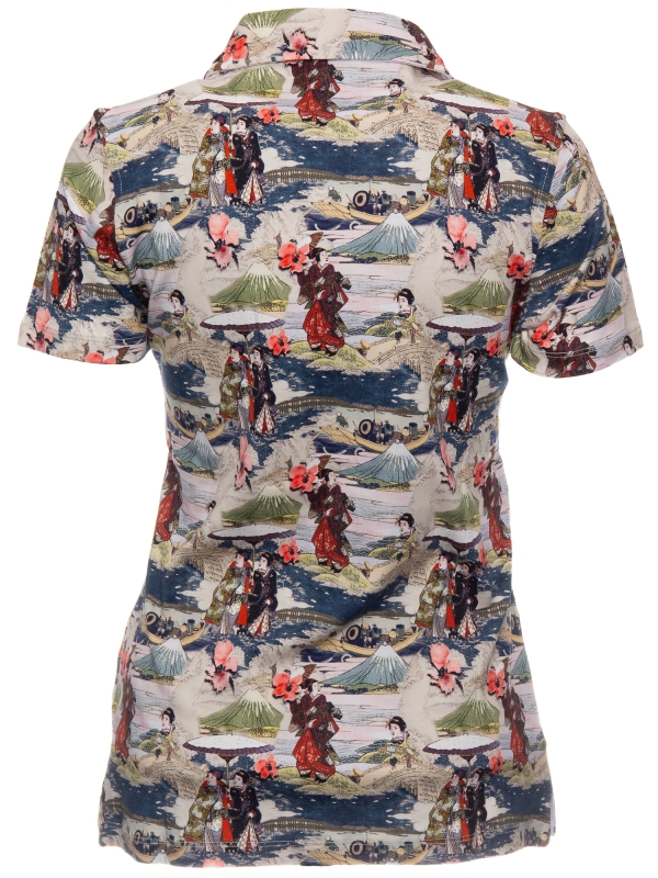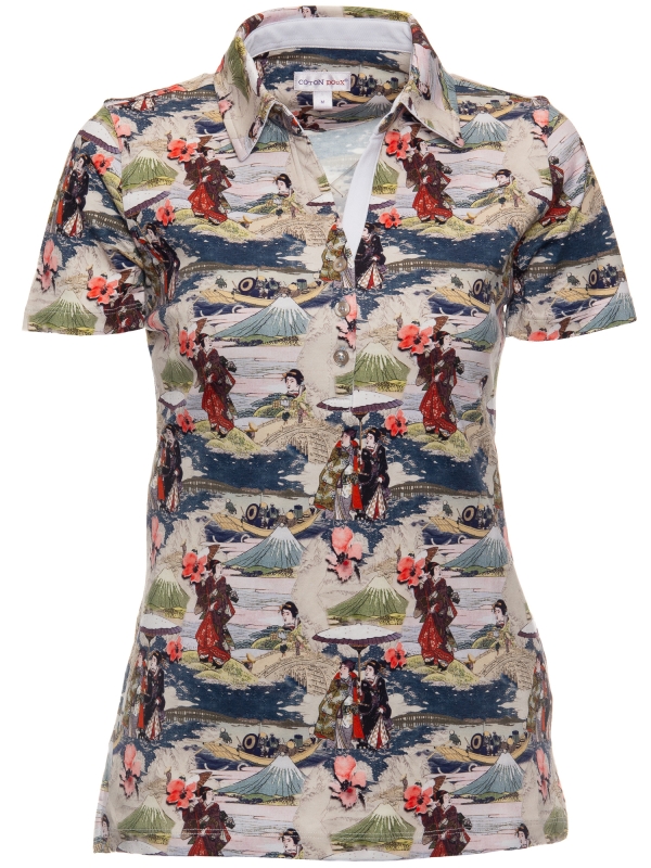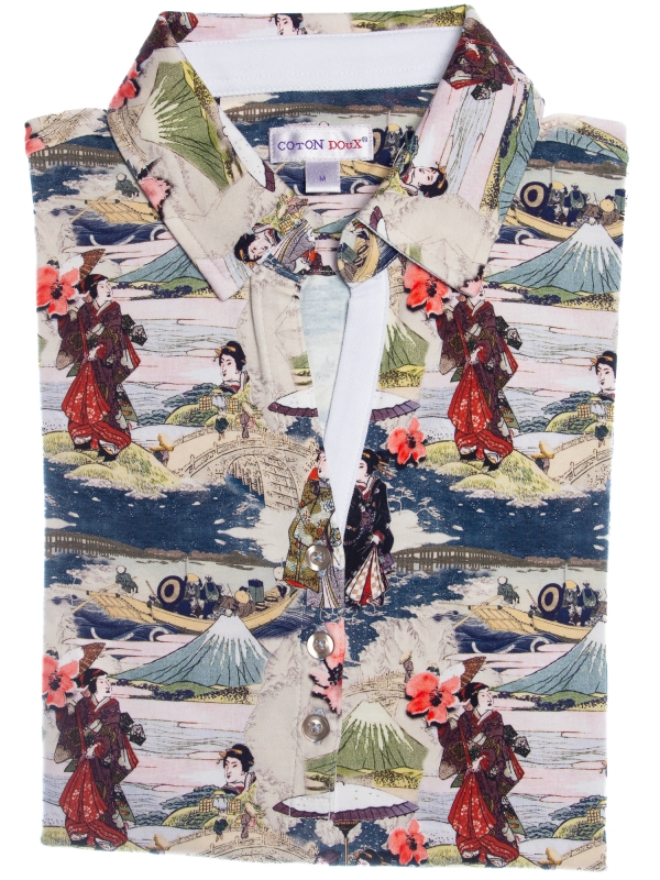 A masterpiece of refined artistry, this polo is inspired by the elegance of traditional Japanese prints, featuring a tranquil landscape in soft, muted hues. The delicate brushstroke effect evokes a sense of serenity and sophistication. The slim fit contours gracefully to the body, while the cotton piqué collar and three-button placket enhance its classic charm. Made from mercerized cotton jersey, this polo feels ultra-soft against the skin and ensures long-lasting comfort.