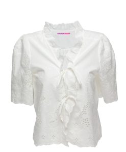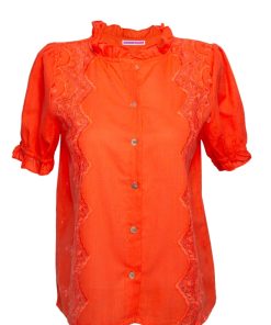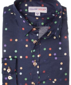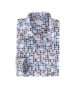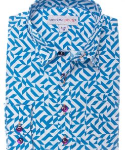 Coton Doux Grey Women’s Slim Fit Cotton-blend Polo Shirt With Blue Flowers Inner Lining Print
